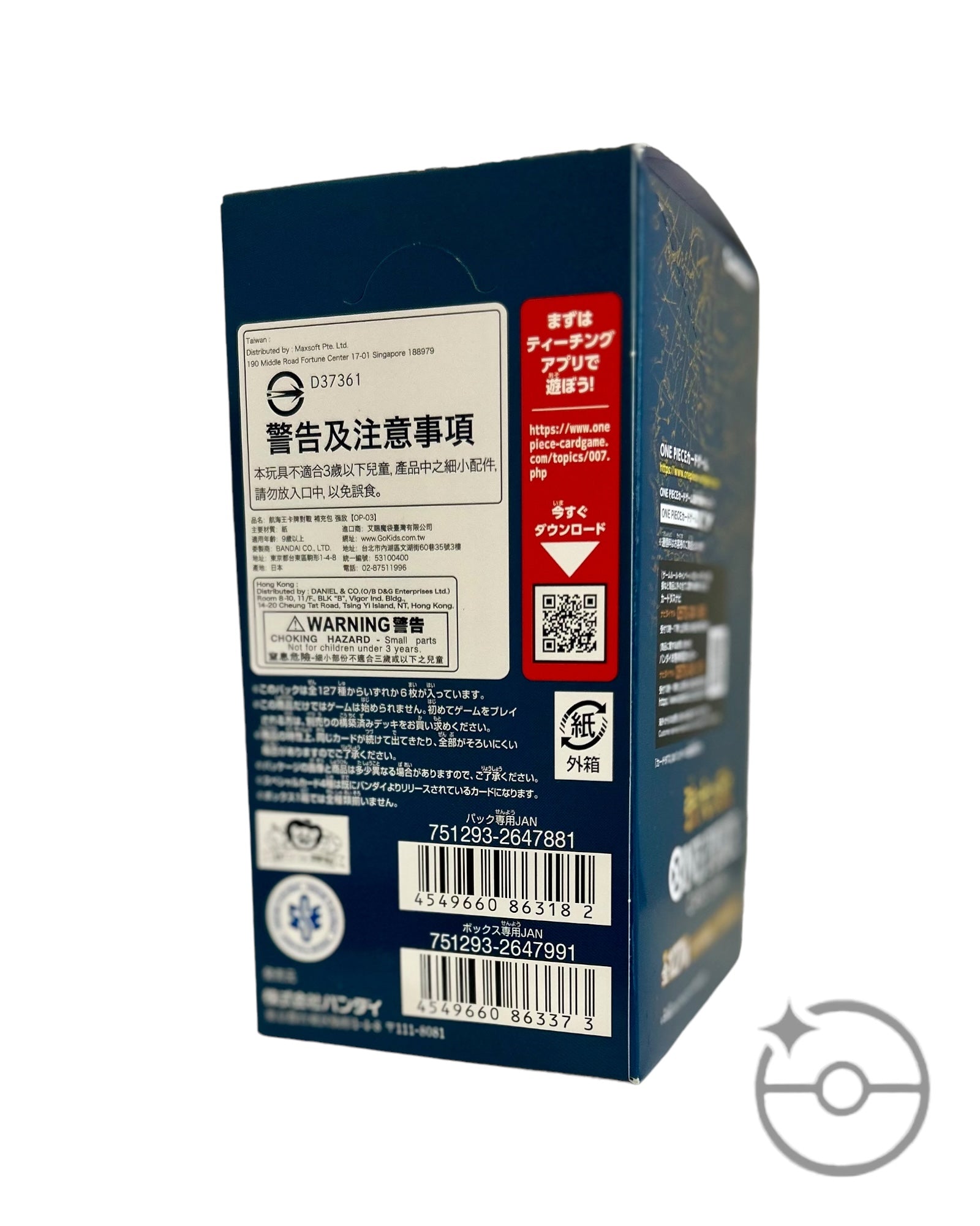 *Japanese One Piece boxes do not have shrink wrap, they are sealed by a piece of tape over the top flap of the box. This is from Bandai.
