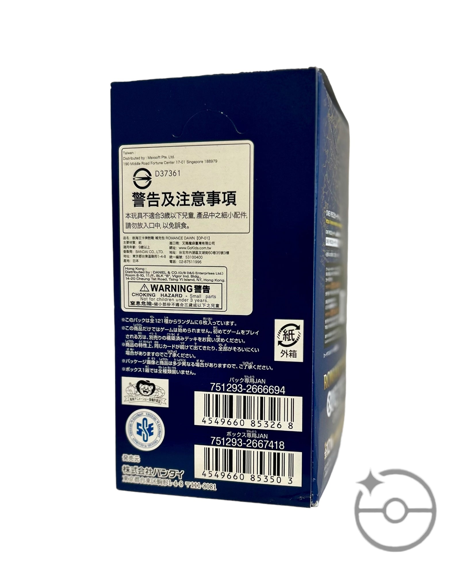 *Japanese One Piece boxes do not have shrink wrap, they are sealed by a piece of tape over the top flap of the box. This is from Bandai.