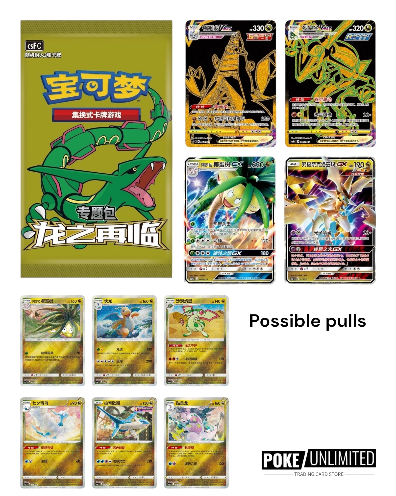 The "Dragon's Return" special booster pack includes a large number of Dragon-type Pokémon from the "Sun & Moon" series to the "Sword & Shield" series, some of which appear for the first time or have brand new art. These new cards are sure to make a great addition to your collection.